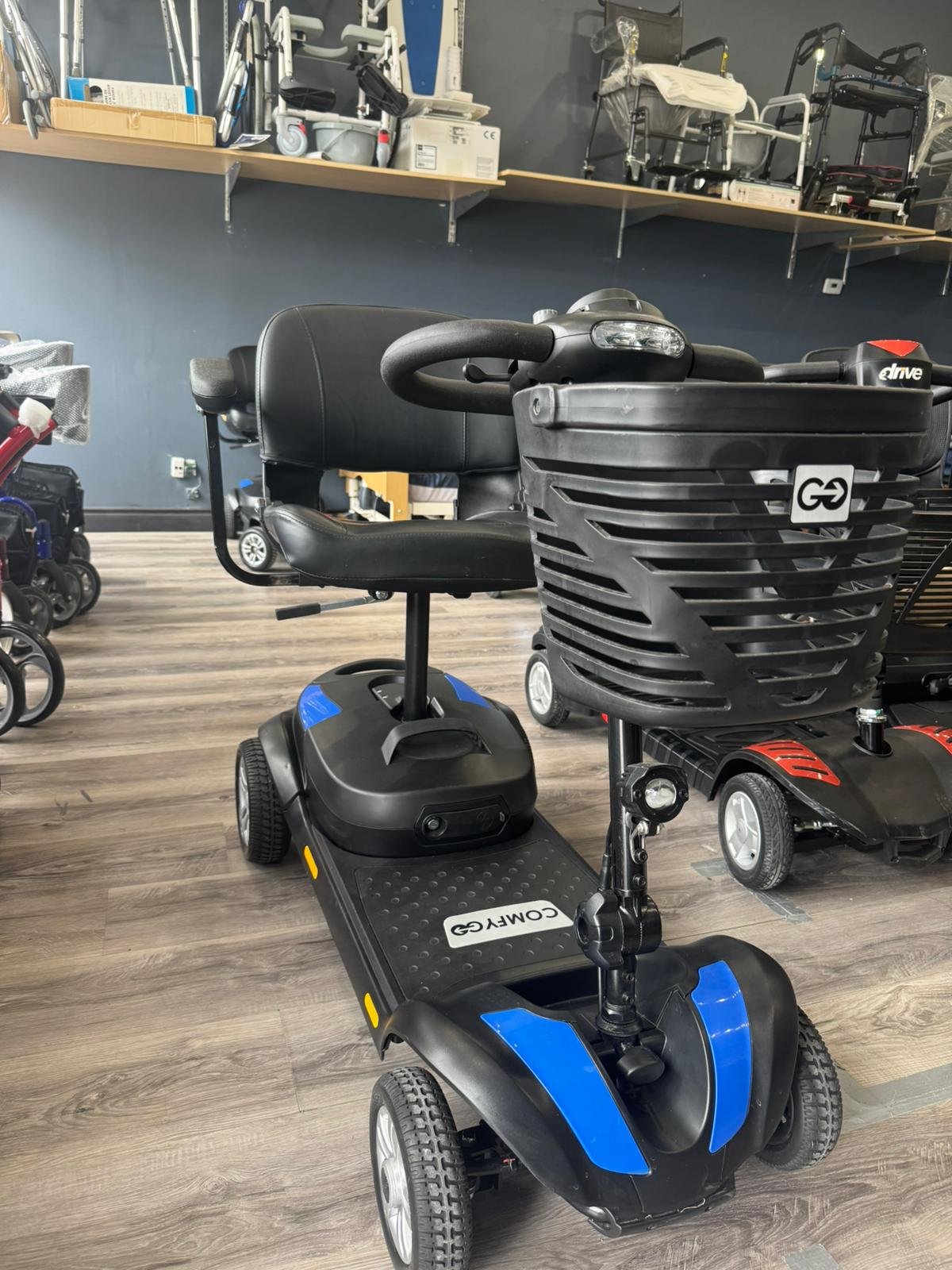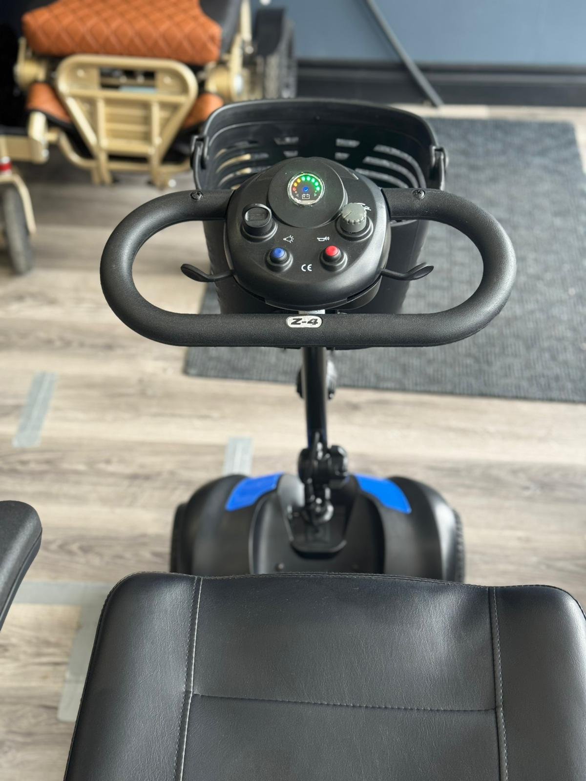 The Z-4 mobility scooter offers simple and intuitive controls, designed for comfortable use with either the left or right hand. Powered by a 250W bridge motor, it delivers exceptional performance across various terrains. The intelligent electromagnetic braking system ensures reliable stopping capabilities, providing a safe and smooth driving experience. Enhanced visibility is guaranteed with the inclusion of front upper and lower dual headlights, making the Z-4 a practical and versatile choice for your mobility needs.